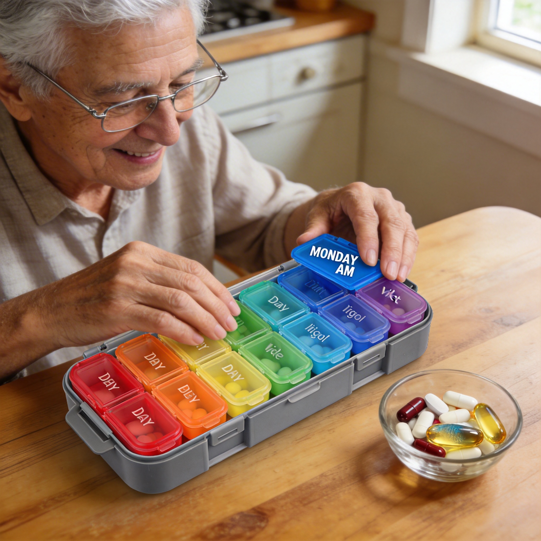 Most basic 7-day organizers use monochrome designs or small text that’s hard to read, especially for seniors with vision impairments. This product uses seven distinct colors for each day, paired with large, bold AM/PM markings. A 2022 study by the American Geriatrics Society found that color-coded medication tools reduced dosage errors by 35% among older adults. Unlike competitors that may only label days without AM/PM separation, this organizer eliminates confusion between morning and evening doses.