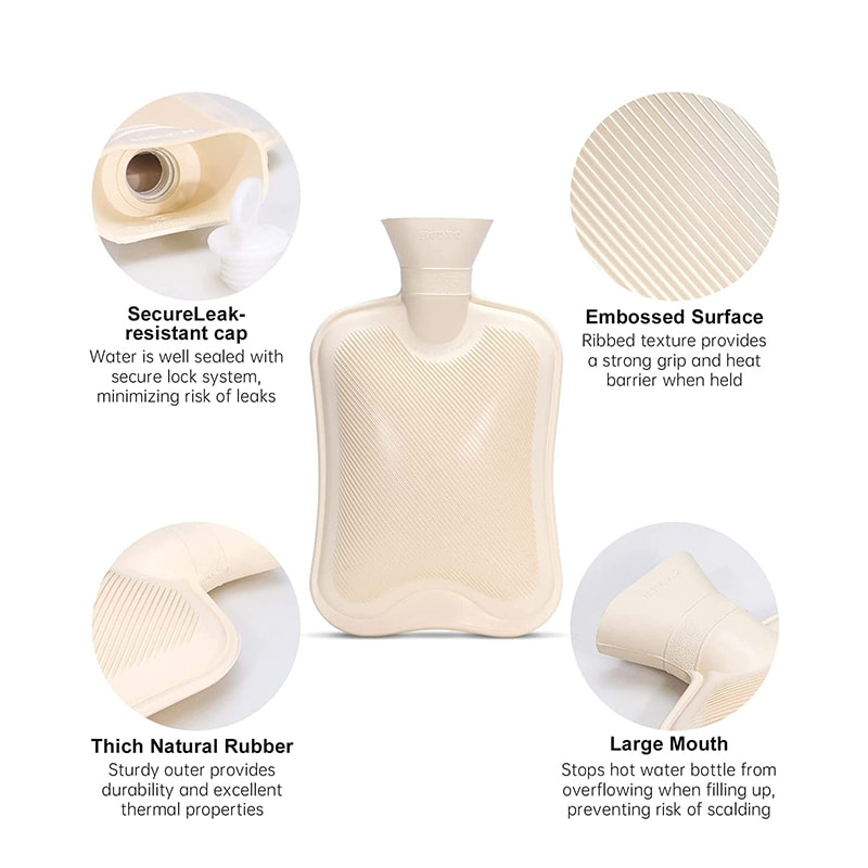 Hot water bottle can be used alone as a remedy for aches, pains and sports injuries, such as back, neck & shoulder pain, muscle sore, menstrual cramps and tension.