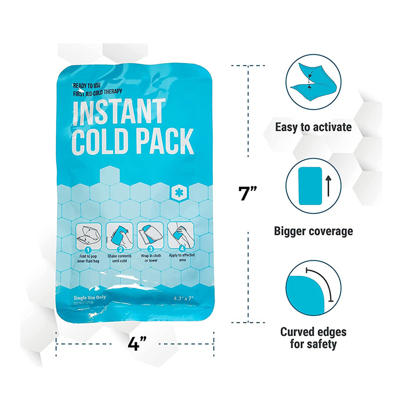 Use the instant cold pack for first aid relief, muscle sprain, spasm, bruises, nerve pain, stings, headaches, and fevers.
