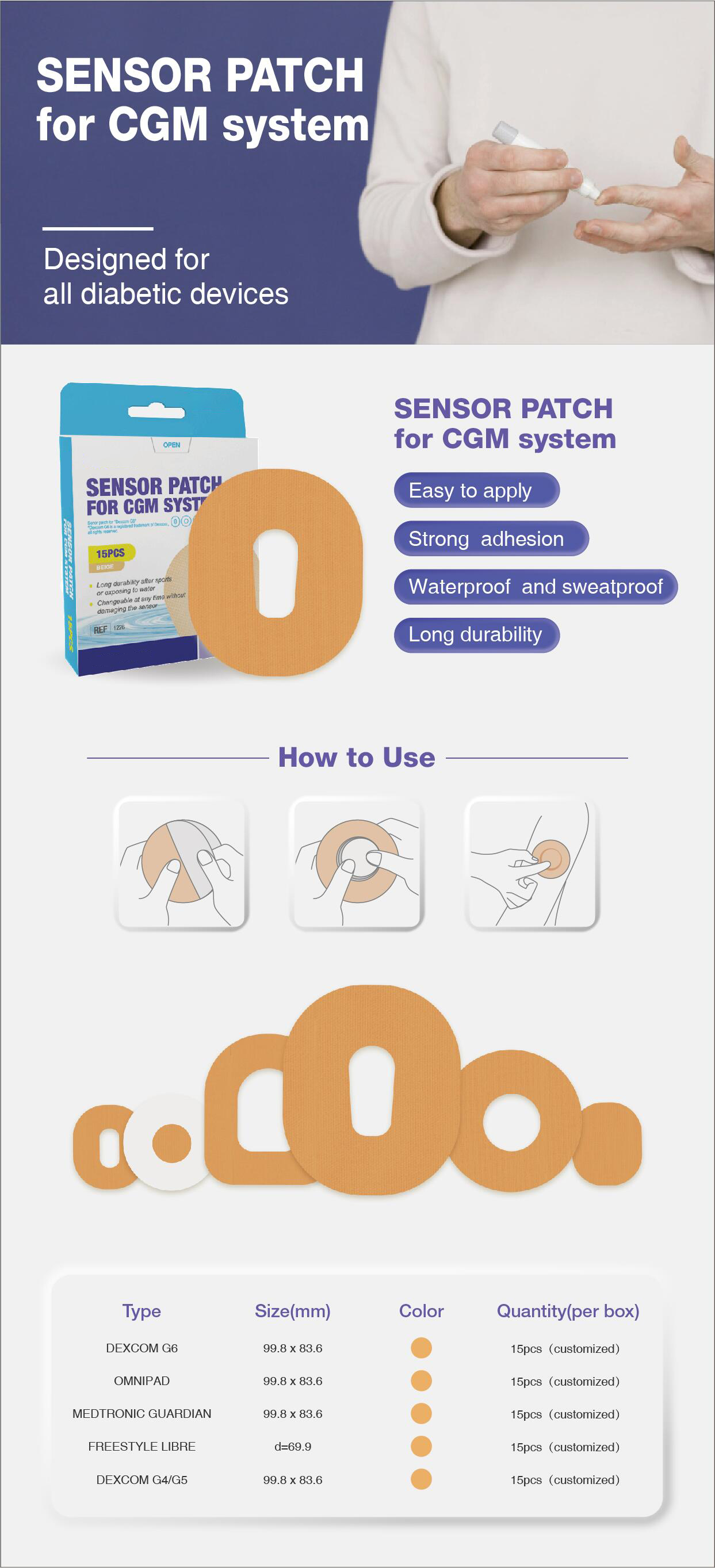 Function: Secure CGM sensor and prevent edge peeling during sports or shower