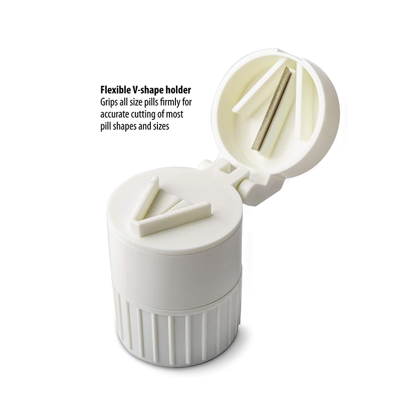 V-shape design for the maintainer in the top cutting box, fix the pill ly, and you can easily cut the pill by closing the lid.