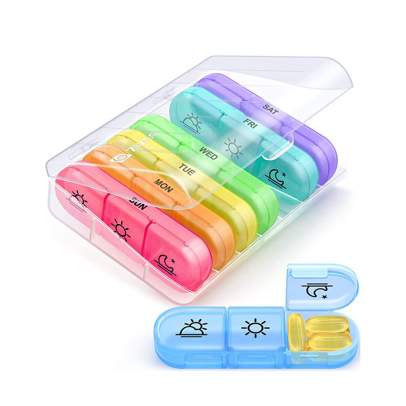 This premium pill container is equipped with high-quality solid-state ABS external holders and high-quality food-grade PP daily pill box organizer.