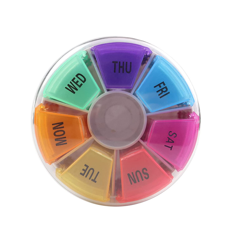 Lids of pill box are easy to open and close, and pill container can also prevent the pills from falling.