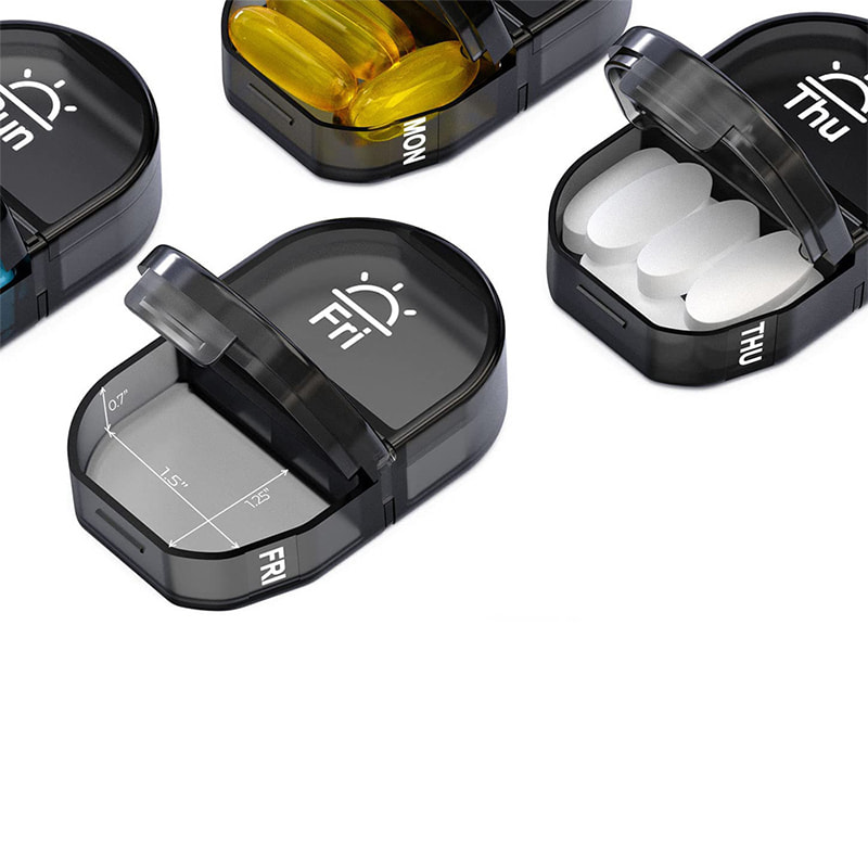 This personal pill organizer is made of BPA-free material food-grade plastic.