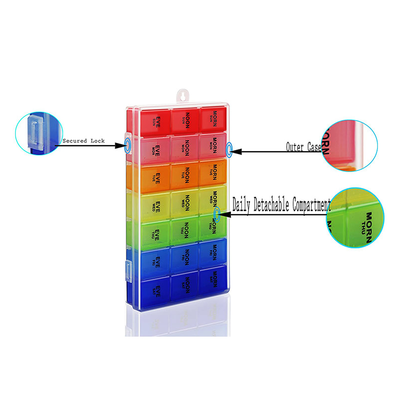 We committed to continuously investing in product development, bring high quality, innovative and effective products to the market and assure you our products are both in quality and reasonable in price. Reliable Detachable Colorful Weekly Medication Tablet Box Suppliers.