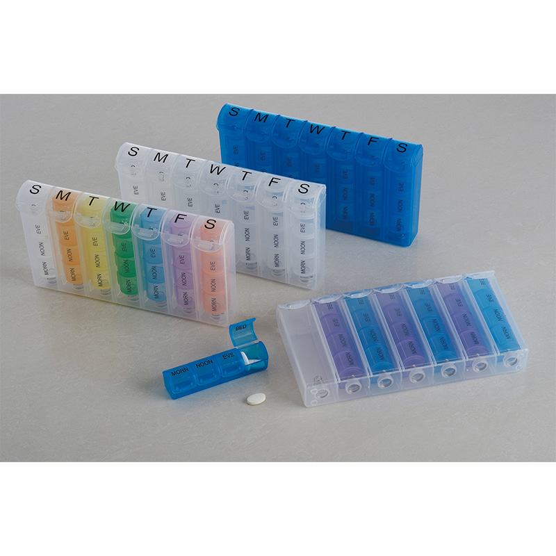 It includes 7 Individual day marked pill organizers for every day of the week.