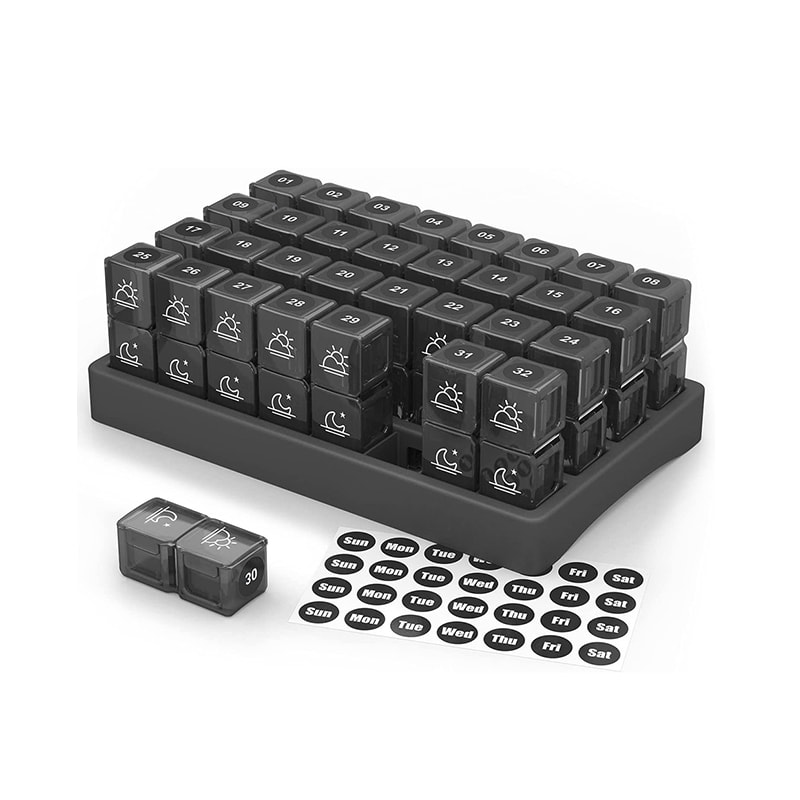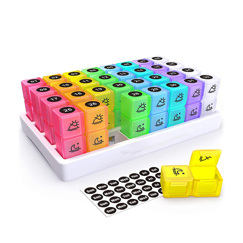 Our 31 day monthly pill organizer features 32 numbered bright and colorful translucent individual pill cases you will be able to check to see if you have taken your pills for the day and that way you won't have to keep multiple pill boxes.