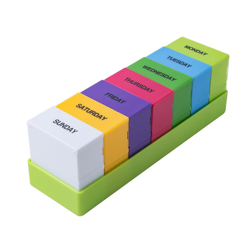 Imagine a pill box that you can plan for your week of medication but only travel with the daily dose of pills you need because each day is removable.