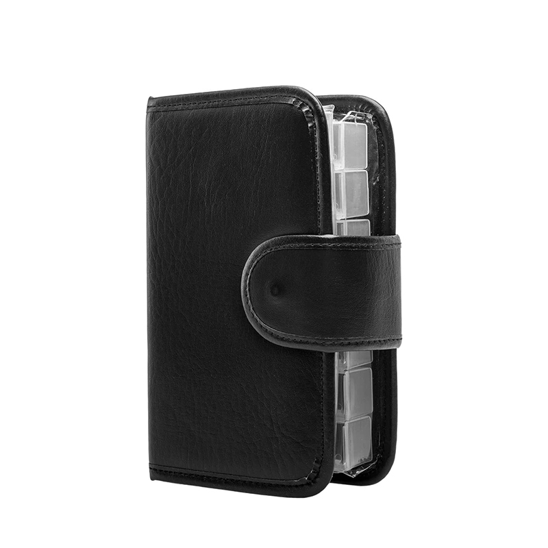 The exterior of the pill dispenser holder is cotton polyester fabric or fancy faux leather.