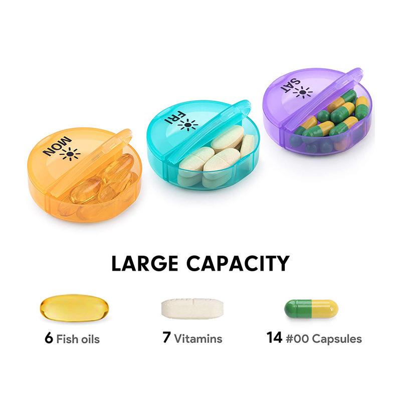 We committed to continuously investing in product development, bring high quality, innovative and effective products to the market and assure you our products are both in quality and reasonable in price. Reliable Round Colorful Daily Weekly Pill Container for Medicine Suppliers.
