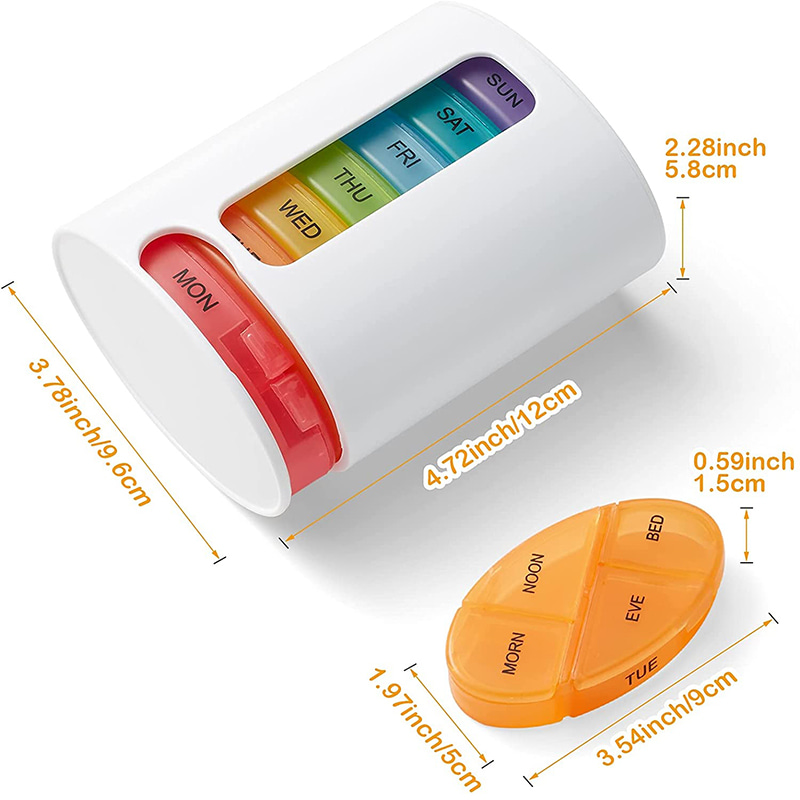 Colorful AM/PM/EVE/BED pill organizer makes it an easy reminder.