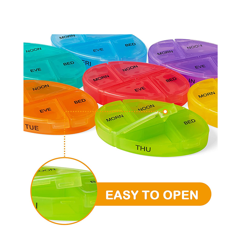 Each daily pill organizer has snap-shut lids to resist popping open even when dropped. Effective to prevent the pill from spilling.