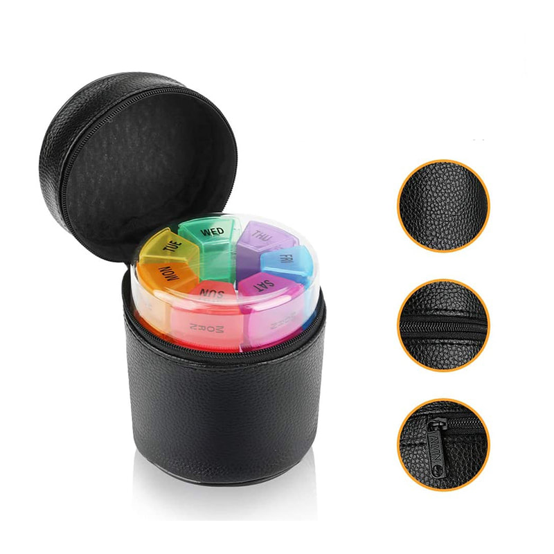 Daily pill case is equipped with a premium fashion zippered leather box.