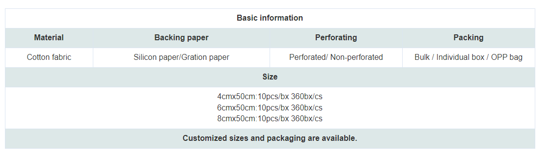 Ahigh quality cotton fabric with acrylic glue. ·Provides good support to muscles...