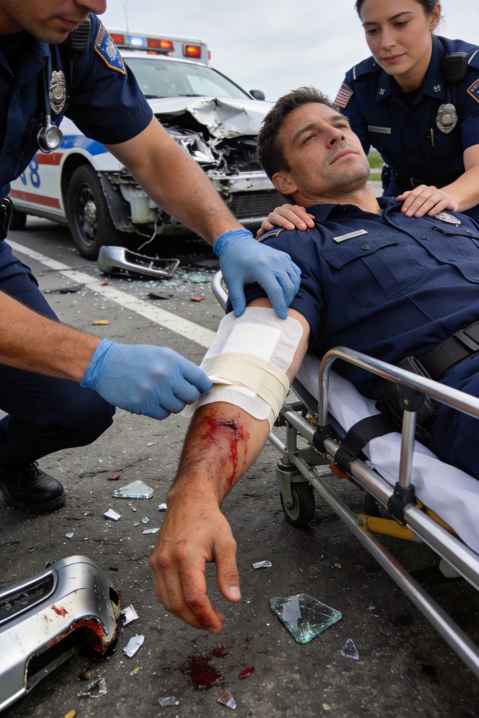 A 35-year-old man is involved in a car accident and sustains a deep laceration on his left arm, with heavy bleeding. Paramedics arrive on the scene and quickly assess the wound. They select the 28x20cm ambulance dressing, which is the right size to cover the entire laceration. The integrated pad and bandage allow them to apply the dressing in 8 seconds, controlling the bleeding immediately. The dressing remains in place during transport to the hospital, where the wound is cleaned and treated. The patient does not develop an infection and makes a full recovery, returning to work in 2 weeks.
