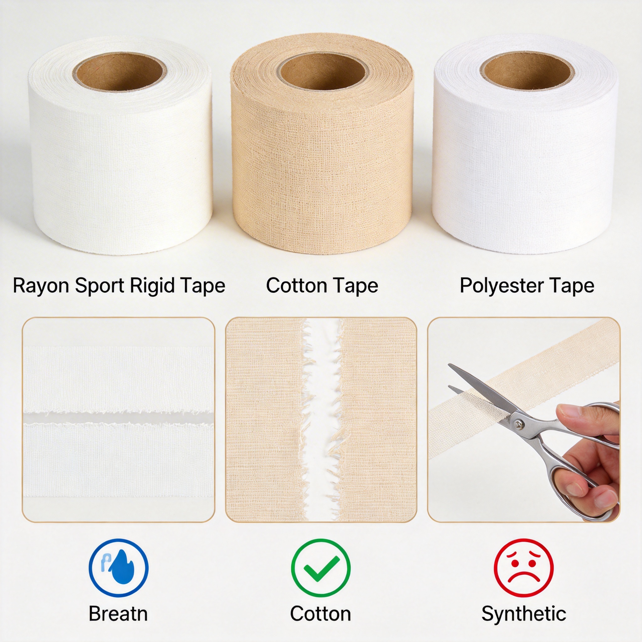 | Feature | Rayon Sport Rigid Tape | Cotton Tape | Synthetic Tape (Polyester) |