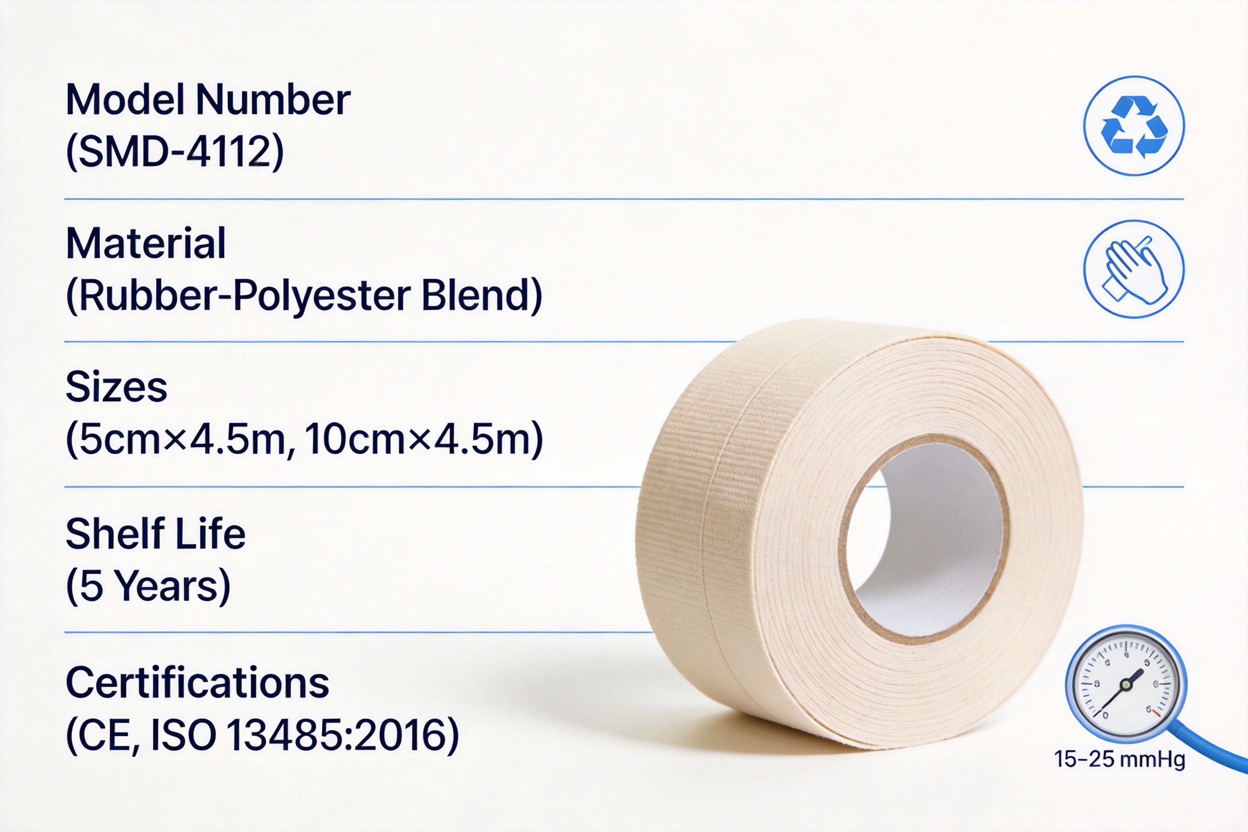 A1: Its unique rubber-polyester blend offers superior elasticity retention (90% after 25 uses), customizable sizing for all body parts, a 5-year shelf life (twice the industry average), and clinical-grade safety at a lower cost than sterile alternatives. Unlike many competitors, it is versatile enough for both sports and medical use.